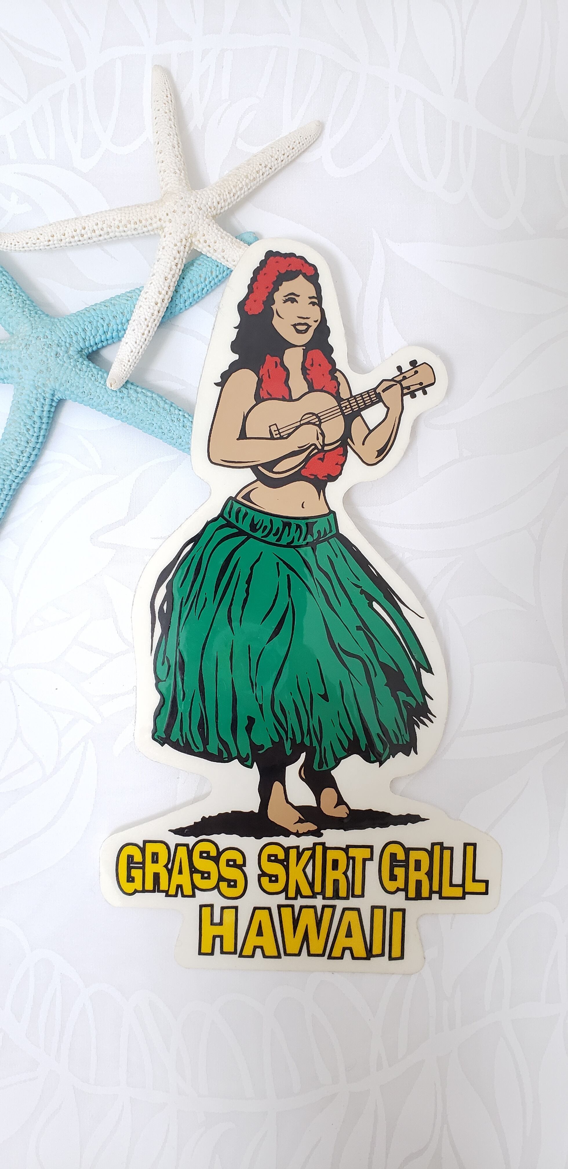 今は無きノースショアのお店、 GRASS SKIRT GRILLのフラガールステッカー☆ 縦 約18cm 横 約10cm